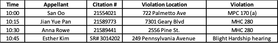 PowerPoint files, documents and photo images in their presentations must send the materials to Nahel Simon via email at nahel.simon@sfdpw.org by 5 p.m. one business day before the hearing. If attendees access the webinar via a computer, they will be able to share documents themselves via the “share screen” functionality.