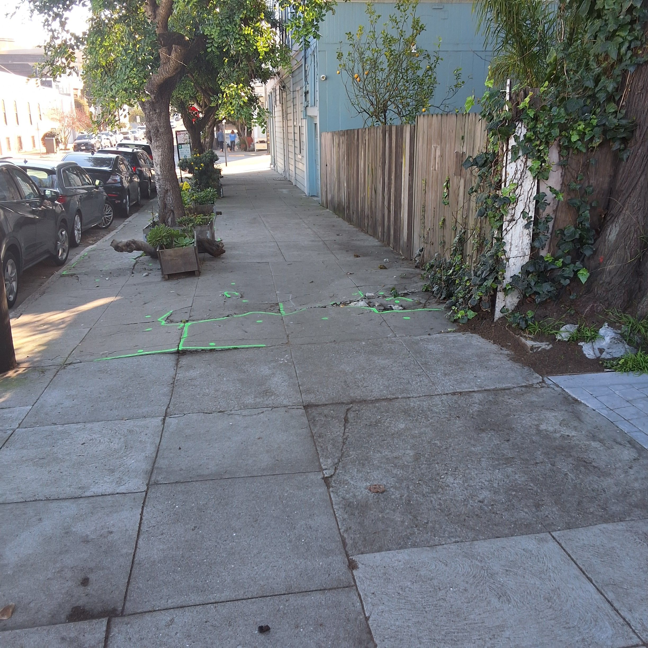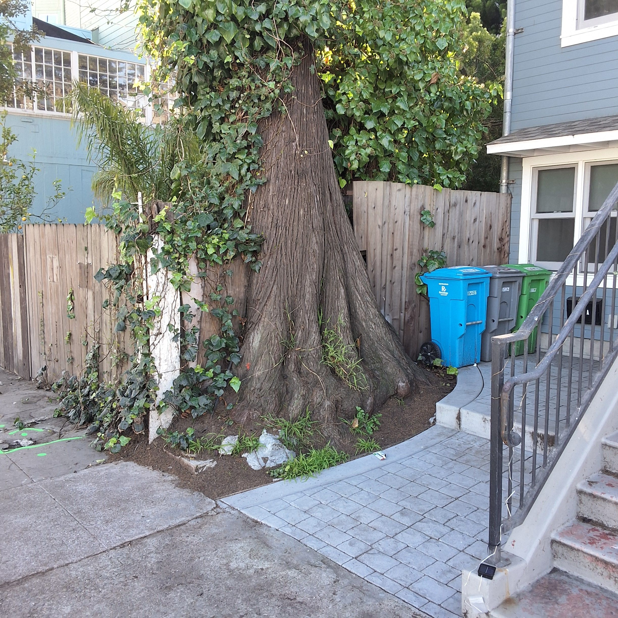 Reason(s) for Tree Removal: Healthy significant tree in unsustainable location. Tree has outgrown planter and is causing damage to foundation of adjacent property. Root pruning will cause destabilization of tree. Location is not replantable. Permit 805694